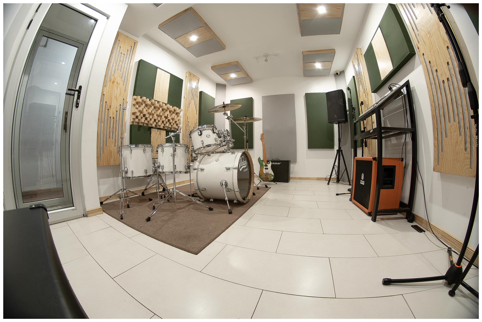 La Sala Pequeña es ideal para formatos reducidos o ensayos acústicos. Su distribución optimiza el espacio para hasta ∼5 músicos(1), ofreciendo un sonido claro y controlado. Cuenta con amplificación de calidad, tratamiento acústico eficiente y aire acondicionado, siendo una opción práctica, económica y de excelente rendimiento sonoro.